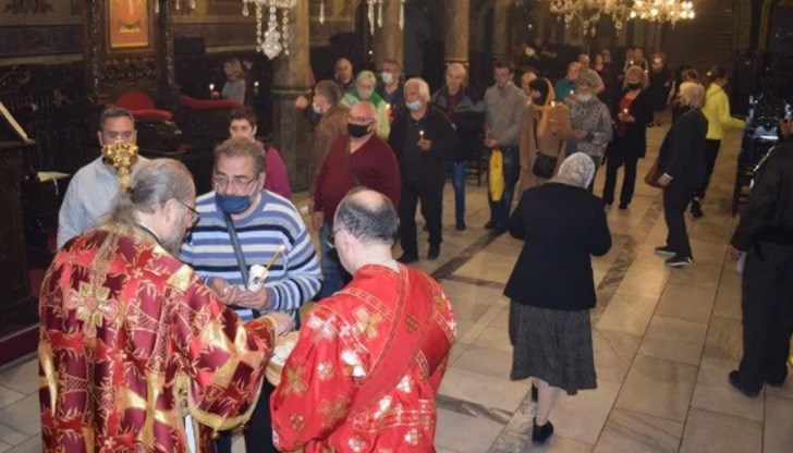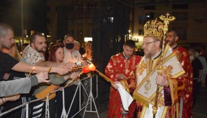 По-късно в храма Негово Високопреосвещенство възглави Пасхалната св. литургия в съслужение с иконом Алеко Рачев, председател на храма, свещ. Недялко Димитров и дякон Росен Георгиев, пише Русе Медиа.