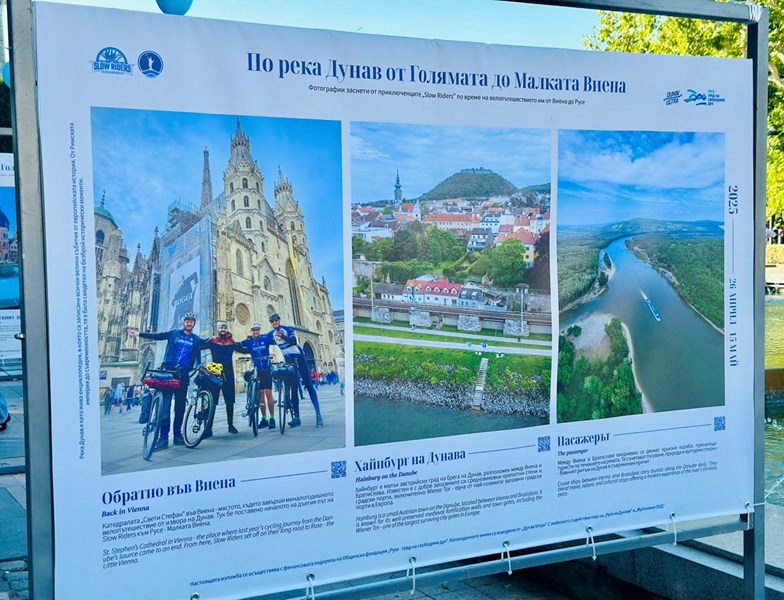 На площад "Свобода" пред сградата на Община Русе бе открита фотоизложба под наслов "По река Дунав от Голямата до Малката Виена". Експозицията беше представена от колоездачите от приятелската задруга "Slow Riders", които споделиха интересни моменти от своето велоприключение – пътуване от Виена до Русе, изцяло по течението на река Дунав.