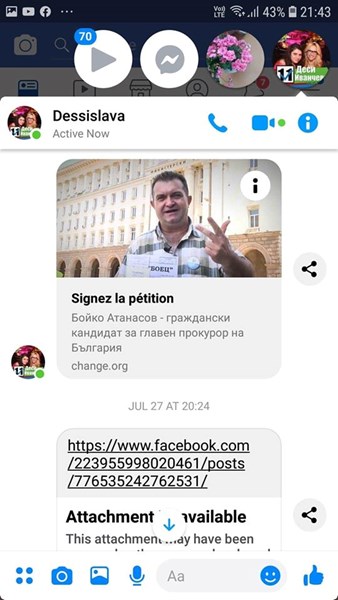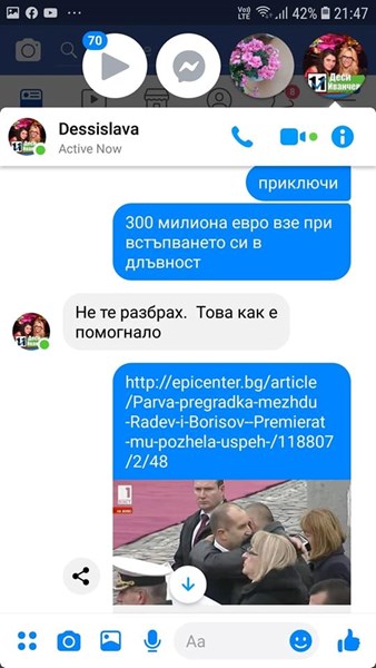 На 10/09/2019 г . той е разпратил по всички медии дискусии в чат по месенджър, който се е провел между мен и Десислава Иванчева...!!!!