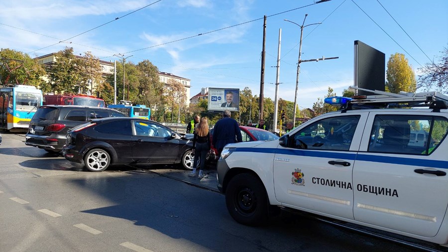 Верижна катастрофа блокира централно кръстовище в столицата.