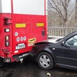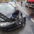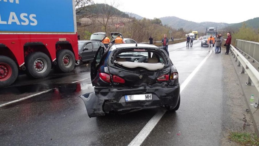 Челно се удрят лек автомобил Алфа "Ромео“ и товарен автомобил с търговищка регистрация. След като товарният спира, отзад в него се врязва Фолксваген 'Голф“.