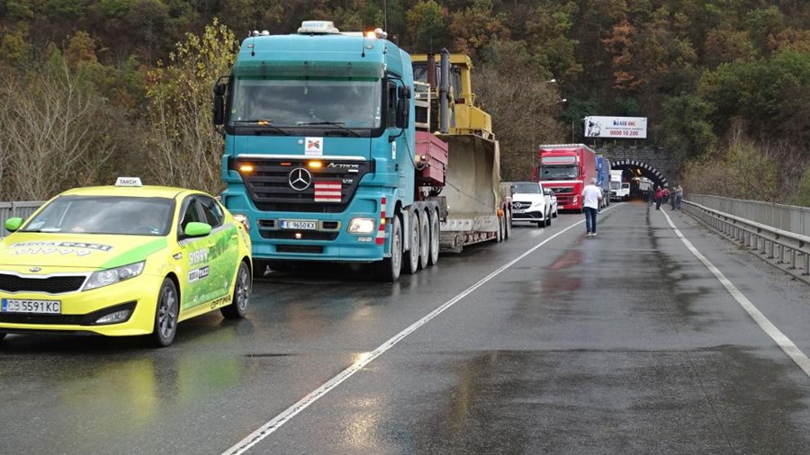 Движението се пренасочва по обходния около тунела, но по него става задръстване заради тесния път. Опашката от чакащи автомобили от двете страни на тунела е д 2 км.