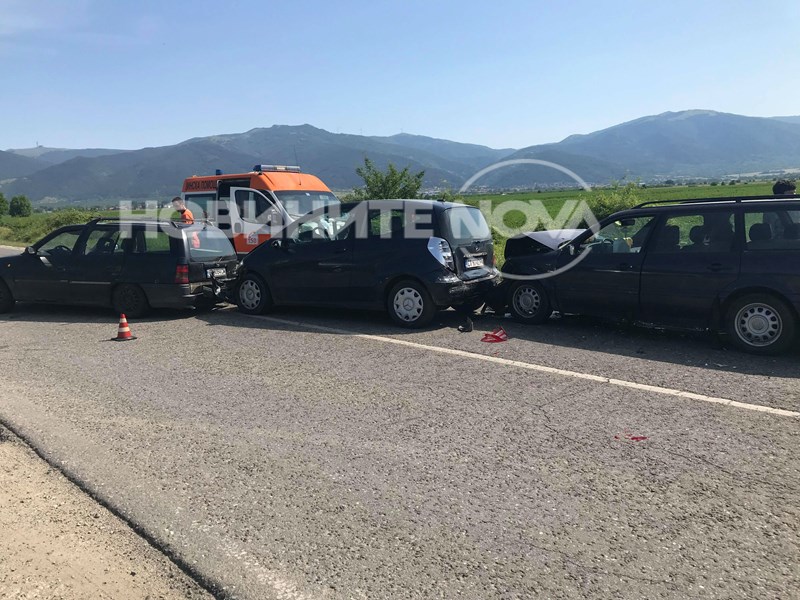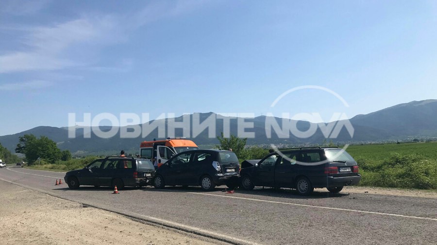 Верижният сблъсък е между три автомобила, предава NOVA. Водачът на първия от тях е завил наляво на забраненоо за извършване на такава маневра място.