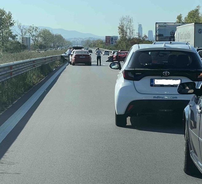 В резултат на произшествието изпреварващата и активната лента са затворени за движение. Трафикът в участъка е силно затруднен, като превозните средства се придвижват единствено през аварийната лента.