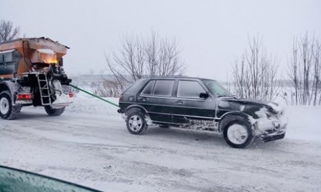 В произшествието са замесени 3 автомобила. До изваждането им от снежните преспи и разчистване на района обаче пътят бе блокиран.