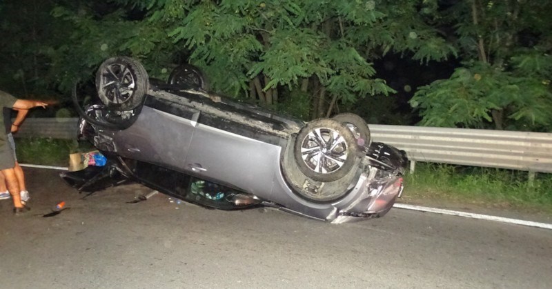 При изпреварването колата блъска първо друг автомобил, след това се удря странично в тир, после в още една кола, а четвъртият автомобил се обръща по таван.