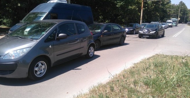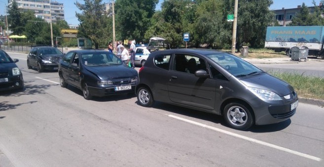 Инцидентът стана днес около 13 часа близо до спирката на закрития пазар в посока към Олимпа. "Мицубиши", карано от жена е намалило скоростта си и в него се ударил "Фиат", управляван от мъж. В задницата на фиата пък се забило "Пежо", също карано от жена. При катастрофата няма пострадали, дори не се наложило да се вика линейка, но пък екип на Пътна полиция документира случая, предаде briagnews.bg.