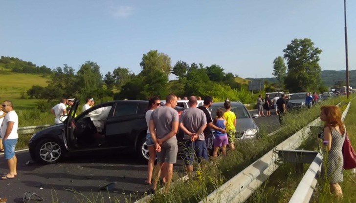 В 18.30 часа трафикът в посока Благоевград е напълно спрял. Стотици са блокираните автомобили. На пътя има много хора, излезли от автомобилите си, за да наблюдават случилото се. В 18.35 часа линейка, идвайки в насрещното, успя да откара жената, на която й прилошало, и заради, която стана катастрофата.