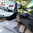 В момента, когато извършвал маневрата бил ударен странично от идващ откъм ул. „Скопие“ „Фолксваген“ с холандска регистрация, управляван от гражданин на страната на лалетата. В резултат на удара „Форд“-ът пък ударил линейката. За щастие, разминало се без пострадали, щетите са само материални. Сериозно е увредена предницата на „Фолксваген“-а, значителни поражения има и по „Форд“-а.