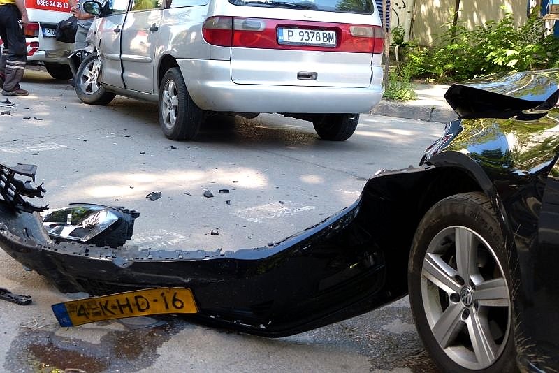 В резултат на инцидента са пострадали 3 автомобила, сред които и линейка. Лек автомобил "Форд" навлязъл около средата на платното между улиците "Доростол" и "Скопие", за да заобиколи спряла непосредствено след кръстовището линейка.
