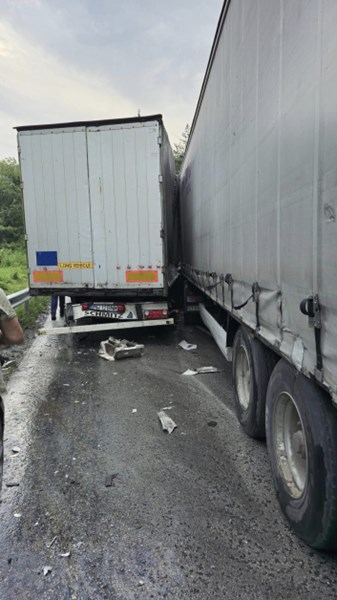 Временно е затворен за движение главен път Русе - Велико Търново заради верижна катастрофа между 4 товарни автомобила.