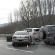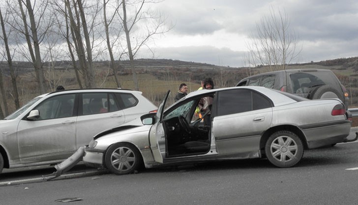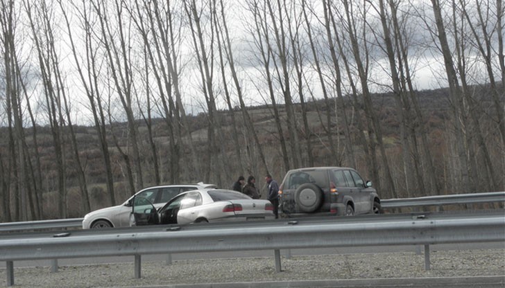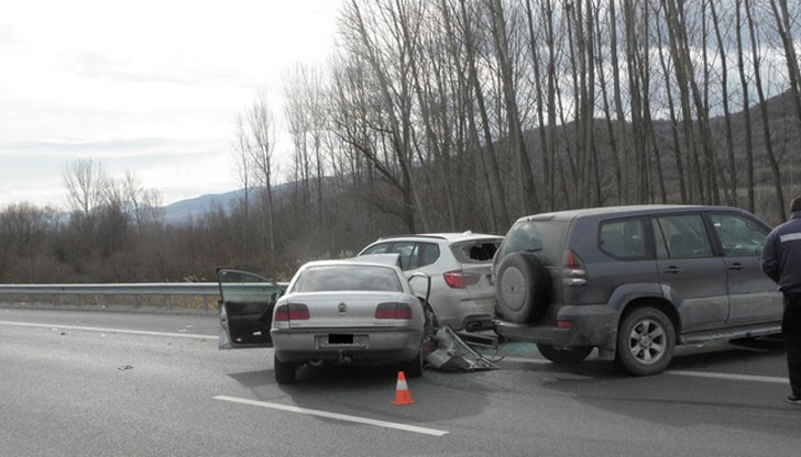 Към 13.15 часа в района на 69 км на магистралата в посока Благоевград се удрят три автомобила – джип "Тойота", "Опел" и "БМВ".