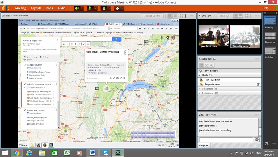 Партньори по проекта са училища от Франция, Сърбия, Румъния, Италия, Германия, Чехия и Словения. Видео срещата се осъществи в eTwinning пространството, Myspace, която дава възможност за висококачествена конферентна връзка. На тази, втора, онлайн среща по проекта учениците от двете страни представиха материалите и информацията, които са събрали за източниците на зелена енергия в своята страна. Всеки клас е поместил своя информация на платформата padlet и googlemap.