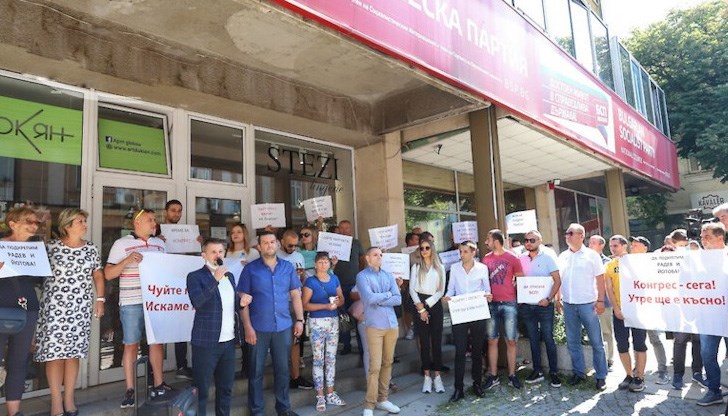 С плакати с надписи „Да спасим БСП“, „Време е за конгрес“, „Чуйте партията“, „Нинова ликвидатор на БСП“, лица от т.нар. "вътрешнопартийна опозиция" и скандираха „Оставка“ под прозорците на лидера на партията Корнелия Нинова.