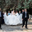 Този път обаче моделиерът беше надминал себе си. Дантелената сватбена одежда на богатата наследница бе обшита с 500 000 кристали и тежеше близо 46 кг. Шлейфът й бе впечатляващо дълъг, както се вижда и на снимки от църквата. Воалът пък беше с дължина над 8 метра, като визията на младоженката бе допълнена от обувки на прочутия "Джими Чу", пише БГНЕС.