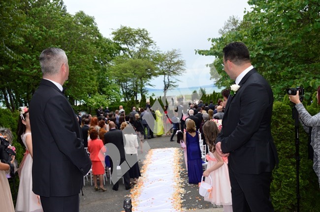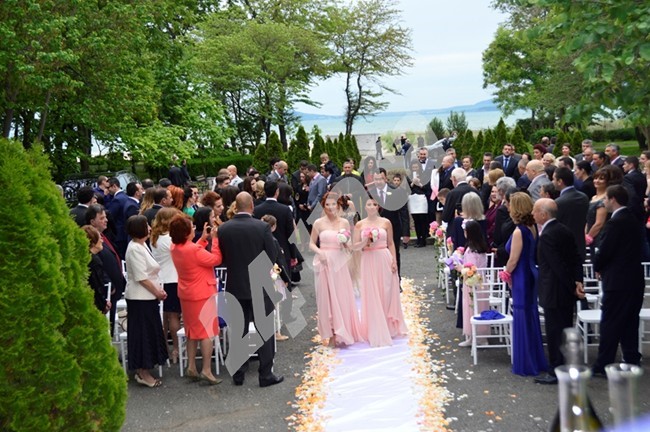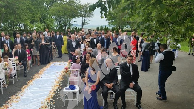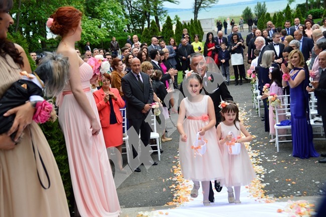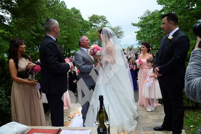 Гостите се събраха пред беседката в очакване на младоженците. Първи се появи Лукарски, заедно с двете си дъщери от първия брак - Богдана и Йоана, които бяха шаферки. Булката пристигна в ретро автомобил. Както повелява традицията, до олтара я отведе баща й.