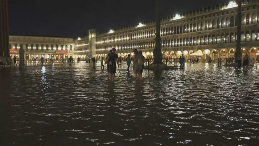 В историята са регистрирани само пет пъти, когато водата залива Венеция през лятото.