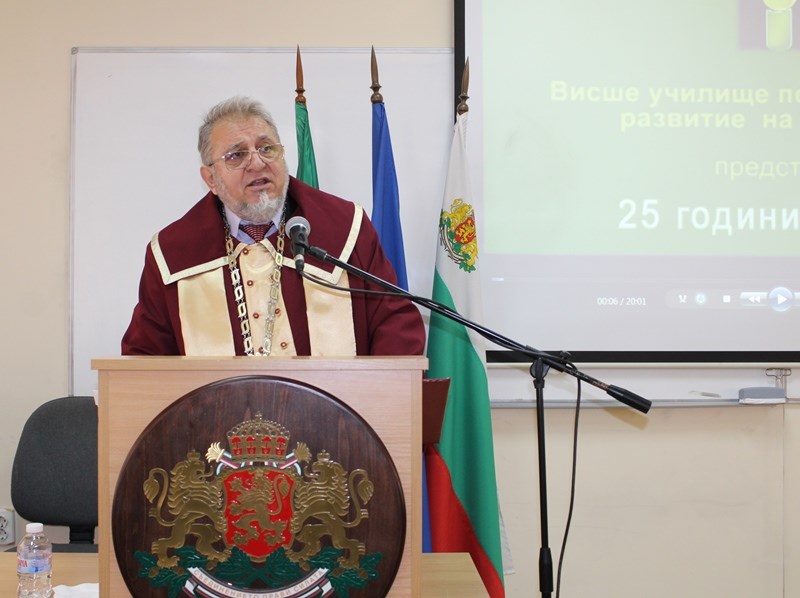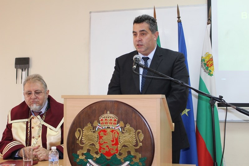 В словото си ректорът академик Димитър Димитров отбеляза, че през 28-те години от създаването на висшето училище са обучени над 32 000 висшисти, като приблизително 52% от тях са се реализирали по специалността си. Акцент беше поставен и върху необходимостта от интернационализация на висшето образование и съответно привличането на все повече чуждестранни студенти.
