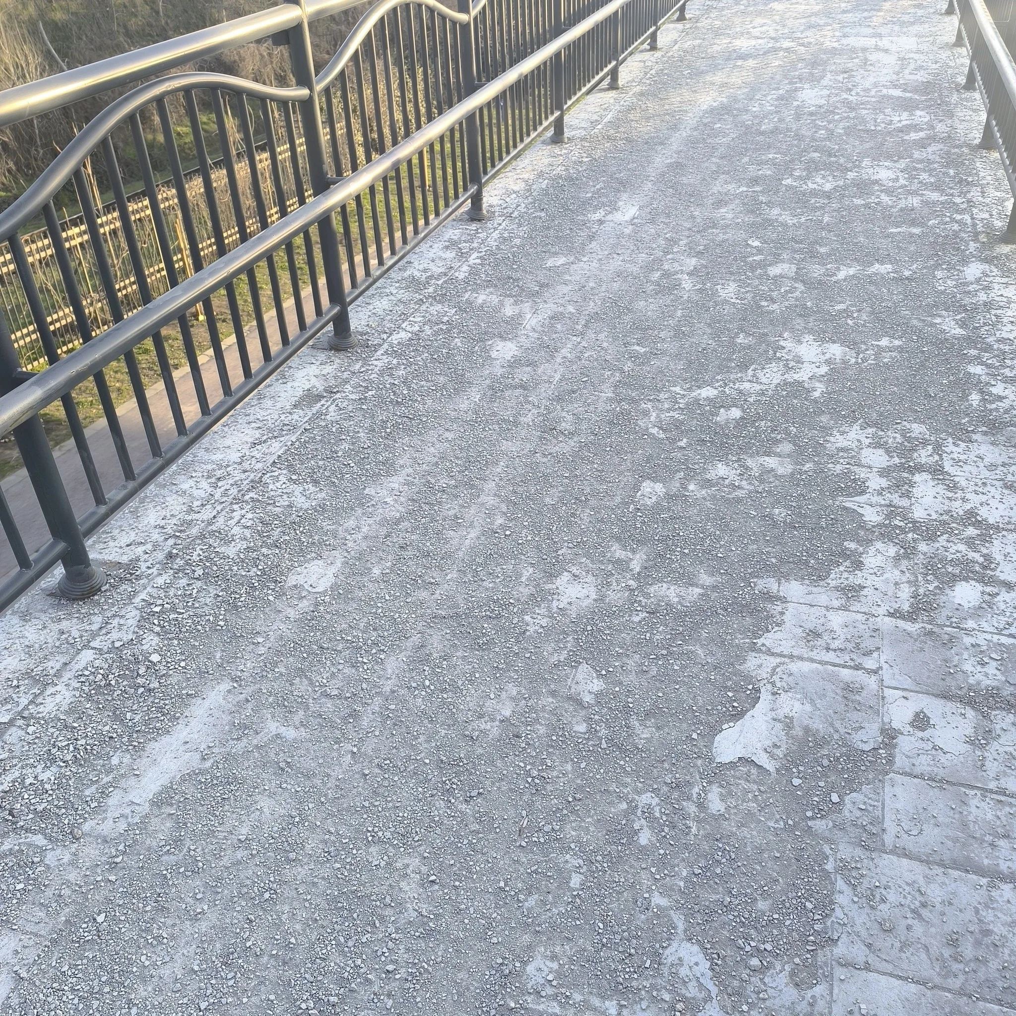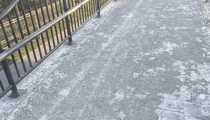 Очевидно е, че общинското предприятие "Комунални дейности" е допуснало груба грешка в протоколите си за зимно почистване, използвайки агресивна химия върху настилка, която изисква специфична грижа и защитни покрития.