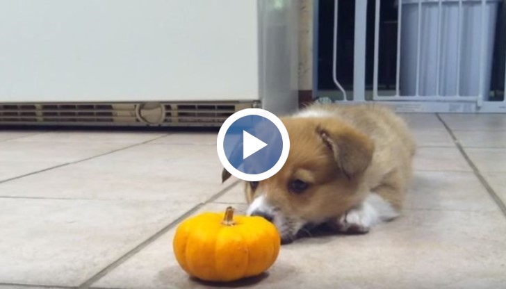 Хелоуин наближава и някои хора отсега се готвят за празника. Семейство се сдоби с миниатюрна тиква и докато се чудеха как да я преобразят за деня на Вси светии, малкото им куче от порода корги побърза да изкаже собствено мнение.