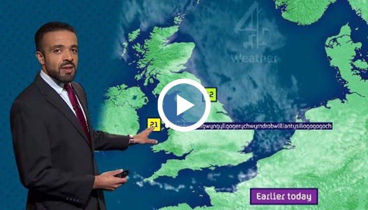 Синоптикът на британската телевизия Channel 4 Лиъм Дътън успя да произнесе името на село в Уелс, което съдържа цели 58 букви.
