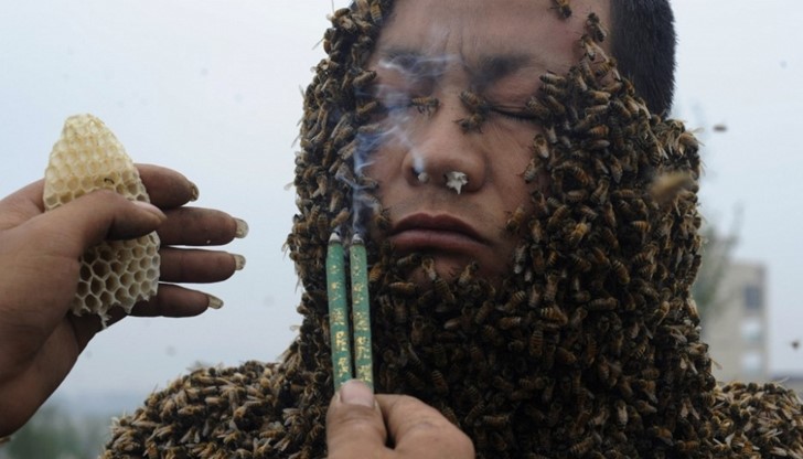 През 2012 г. пчеларят Ши Пинг в Китай покрива цялото си тяло с 331 000 пчели, с което подобрява предишния рекорд.