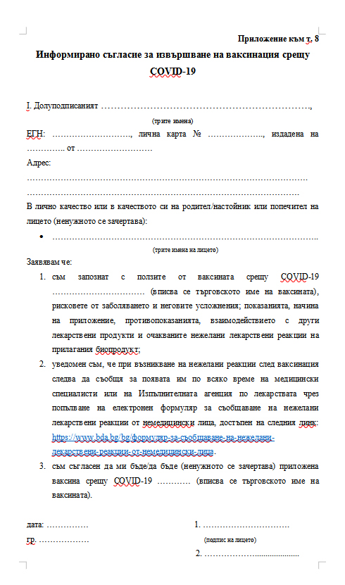 Вижте декларацията за съгласие за ваксинация срещу COVID-19