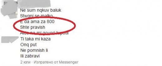 „Вече не искаш ли да се виждаме. Имам парите, ще ти дам тоя път“. От разговора става ясно, че предния или предишните пъти, ухажорът е минал гратис.
