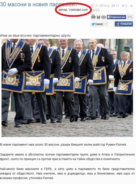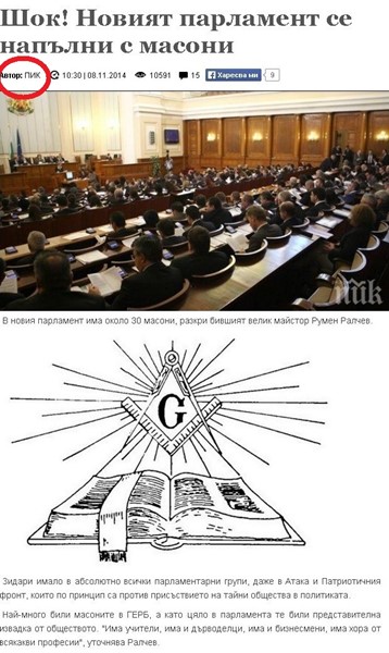 Две сайтчета, които не крият, че са си лика прилика - "Всеки ден" и "Пик", продължават да ограбват труда на БЛИЦ и "ШОУ". Черешката на днешните им постижения е кражбата от сензационното интервю, дадено даде специално за БЛИЦ и "ШОУ" от Великия приор на Велик приорат – България, и член на Магистралния съвет на Ордена на тамплиерите - Румен Ралчев.