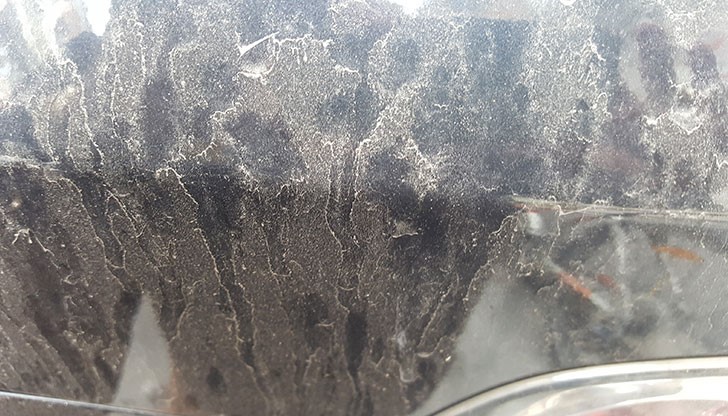 На първата и втората снимка се вижда какво представлява утринната роса в гр. Русе. Изображенията онагледяват химическите вещества, полепнали по растения и предмети. Третата снимка показва саждите, които диша ежедневно всеки от нас.