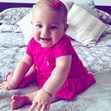 Кадърът по повод седмия месец на момиченцето е с акцент върху бебешка рокля в розово с детайли от малки пеперуди.