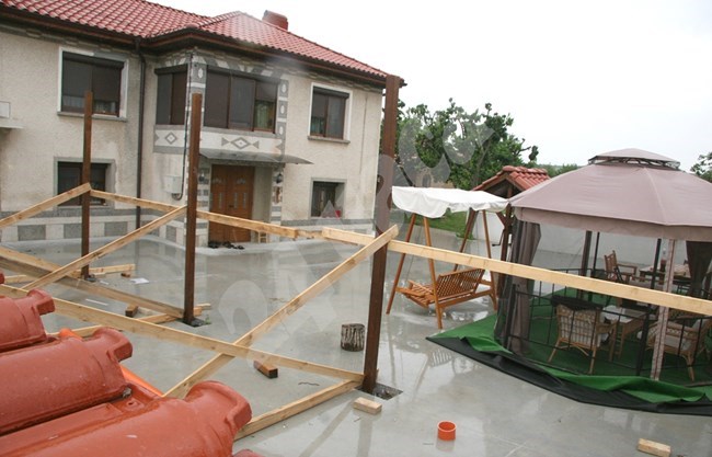 В двора е направена нова беседка, скелето показва, че строителните дейности не са приключили