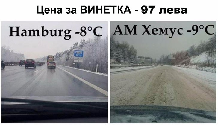 "Помня 2003-та година минах през Австрия с подобна снежна покривка, снегът беше около пътя, самия път беше от полусух до сух асфалт! Това е преди 13 години. Плащаме за вратна пържола, а ни сервират вкиснала леща! За мен отговорът на въпроса е - никой няма да врещи за цената на винетката, стига пътищата ни да са на поне средно ниво!"