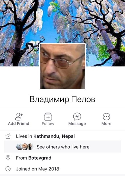 Внего авторът на шегата е обозначил и мястото, на което Пелов се крие. В общата информация той е написал, че сегашното местоположение на издирвания е Катманду, Непал. Профилната снимка на Владимир е взета от едно от заседанията в съда по повод двамата убити ромски братя Марко и Цветан, за чиято смърт отново бе заподозрян Пелов.