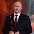 Руският президент Владимир Путин присъства на великденска служба в катедралата "Христос Спасител" в Москва, придружаван от кмета на столицата Сергей Собянин.