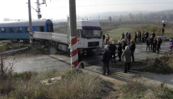 Инцидентът е станал в ранния следобед вчера. Камионът е преминавал прелеза, докато влакът се е задавал и е бил ударен в задната си част, съобщава Нова телевизия.
