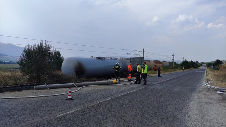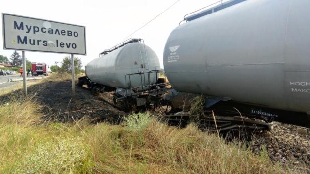 Локомотив на влак с цистерни дерайлира след удар в ел. стълб, научихме от Struma.com. Вследствие на удара няколко от цистерните се преобърнали на релсите. След инцидента са се запалили сухи треви и храсти около ж.п линията.