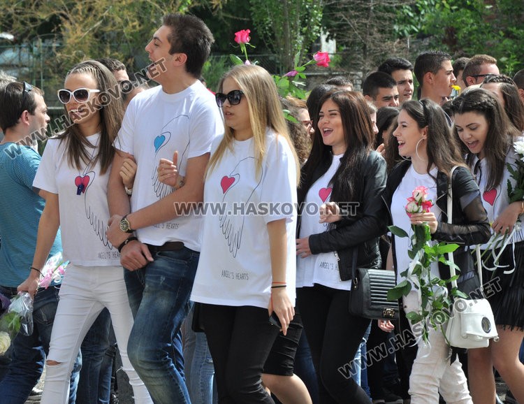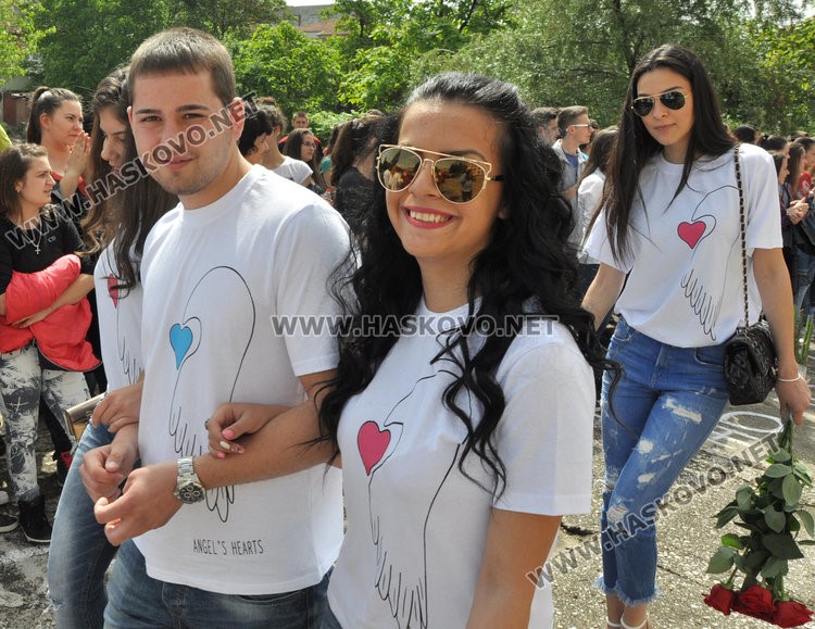 Вместо с елегантни рокли и костюми всички 178 дванадесетокласници отидоха на церемонията с бели тениски на фондация „Искам бебе“, информира haskovo.net.