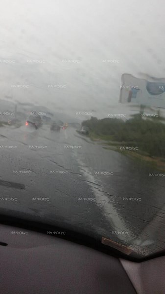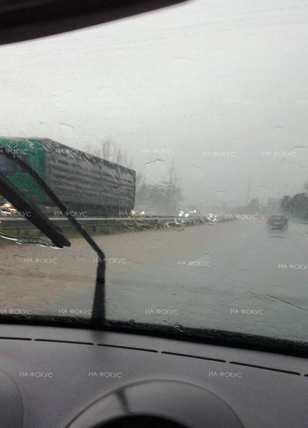 Видимостта е ограничена, водата се оттича трудно. Има условия за аквапланинг.
