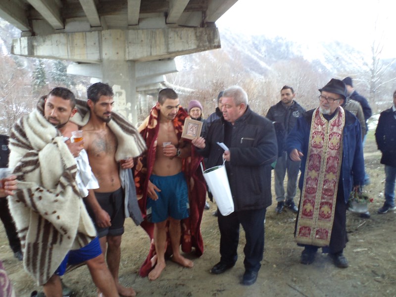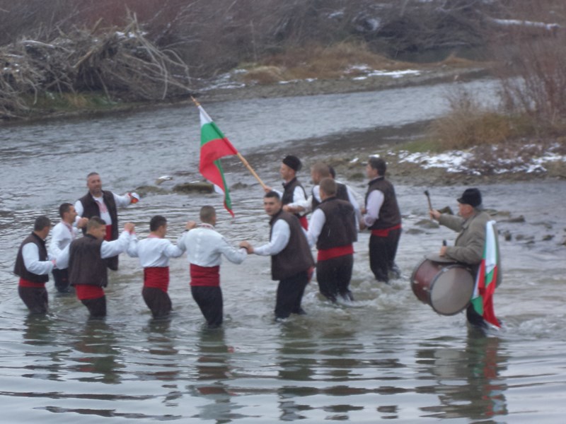 В реката под стария мост навлязоха дванадесет млади мъже и момчета, облечени в народни носии, за да извият традиционното ледено хоро. Независимо от студа и ледената вода, те изпълниха ритуалния танц, с който през цялата година се обричат да са здрави и твърди като камък.