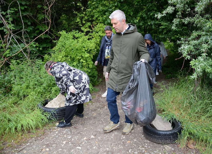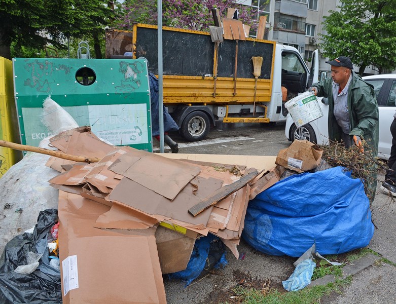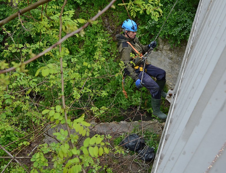Докато водолазите почистваха морското дъно, други доброволци от дружеството работиха по алпийски способ за почистването на дерето в парка в квартал "Възраждане", където теренът е особено труден.