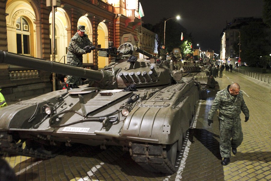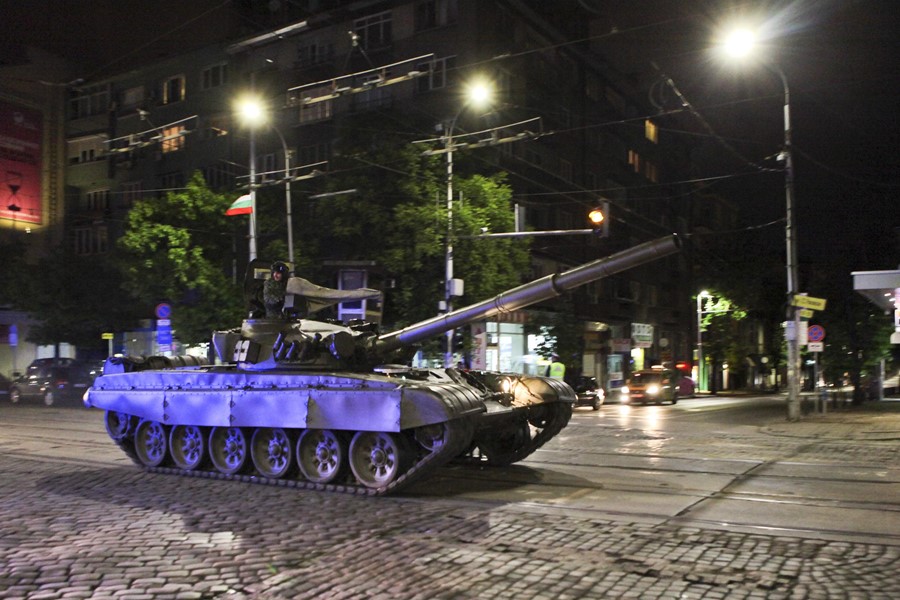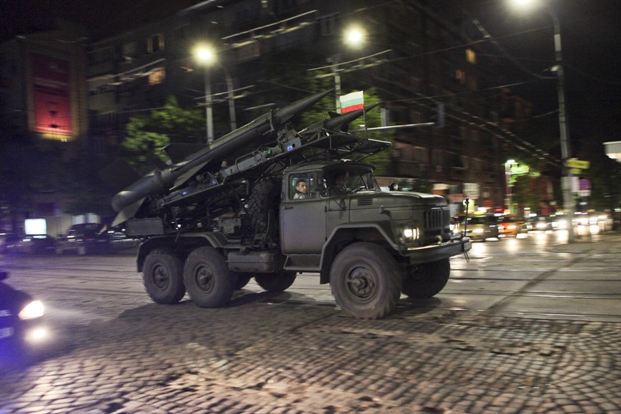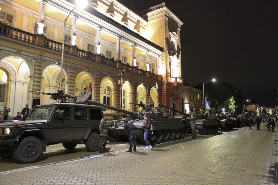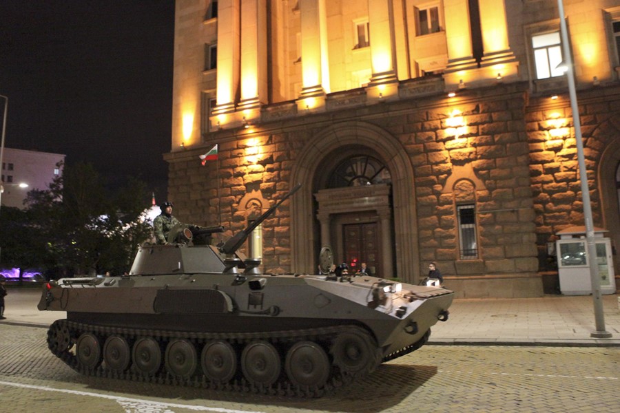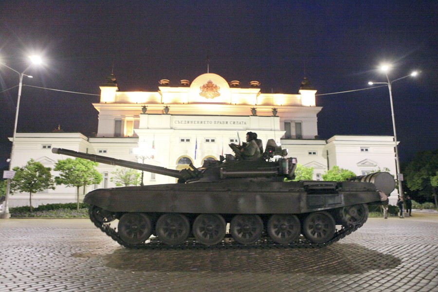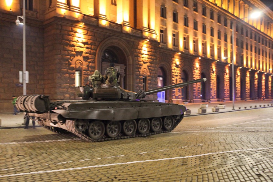 Танкове, самоходни гаубици, ракетни комплекси и още много бойна техника премина малко след 23 часа тази нощ по жълтите павета в центъра на София.