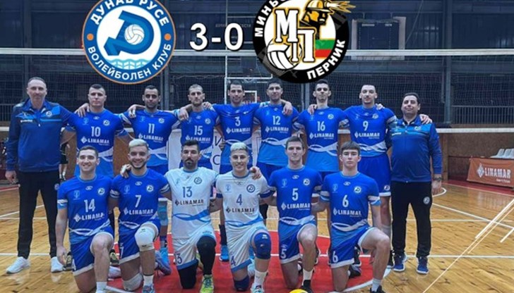 Това стана след като в оспорван мач дунавци надиграха като домакин основния си конкурент в първенството Миньор (Перник) с 3:0 (25:21, 27:25, 25:14).
