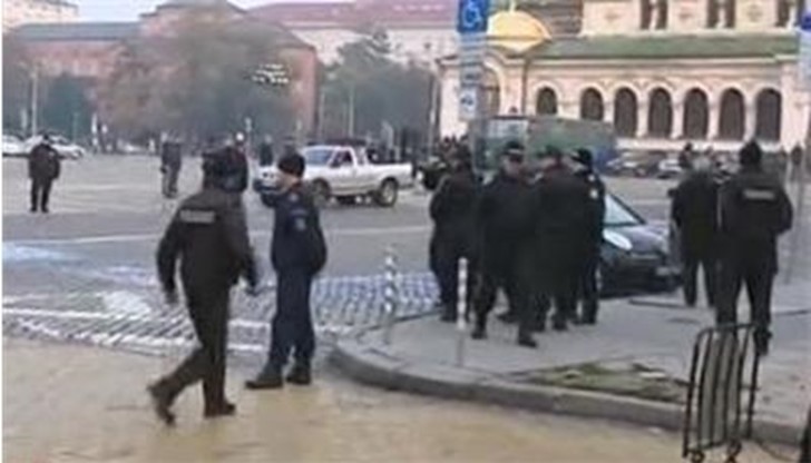 Целият парламент е обградрен от полицейски кордон, като основните сили са съсредоточени между парламента и храма "Александър Невски". Още преди да се развеят български знамена се появи знаме на Руската федерация.