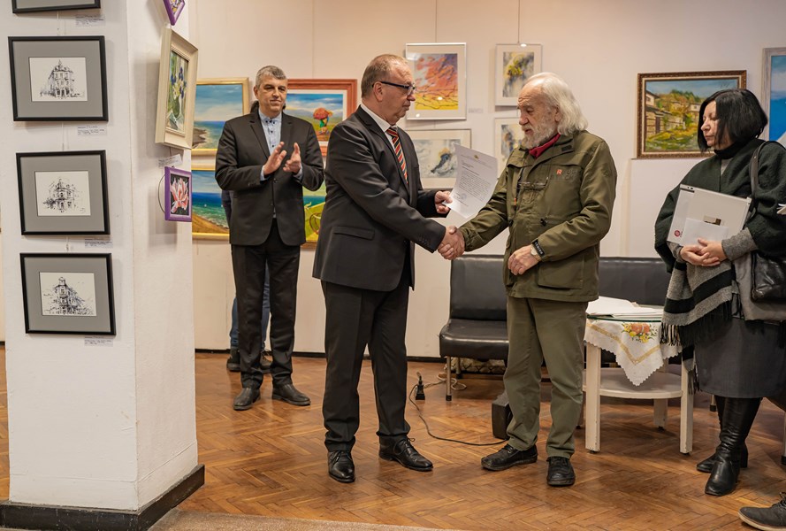 Един от най-изтъкнатите русенски творци - Володя Кенарев получи два значими приза в рамките на днешния ден, научи Dunavmost.com. Заместник областният управител на Русе Георги Георгиев връчи на художника почетния знак на областния управител за неговия съществен принос в развитието на изобразителното изкуство в региона и страната.