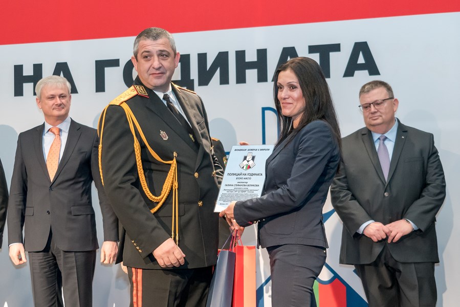 Победителите получиха призовете си на специална церемония в Националния дворец на културата, на която присъстваха вътрешният министър Младен Маринов, представители на политическото и професионално ръководство на МВР, както и главният прокурор Сотир Цацаров и неговия заместник Иван Гешев.