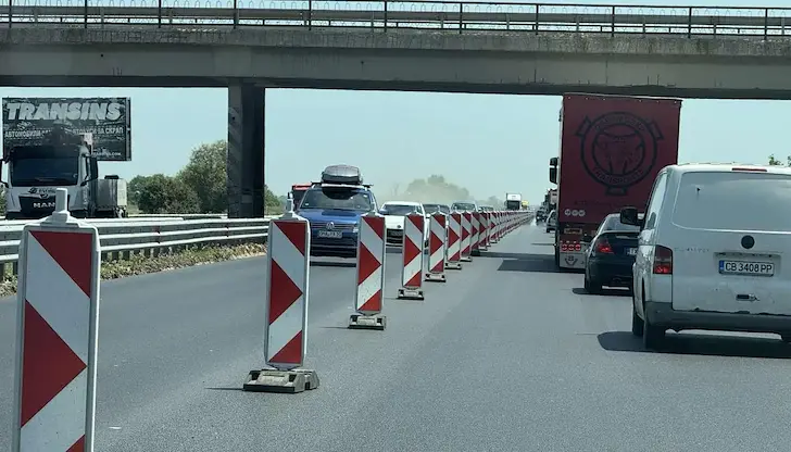 Днес oт 8:00 до 16:00 часа трафикът в отсечката от 99-и до 106-и километър ще се извършва в активната лента