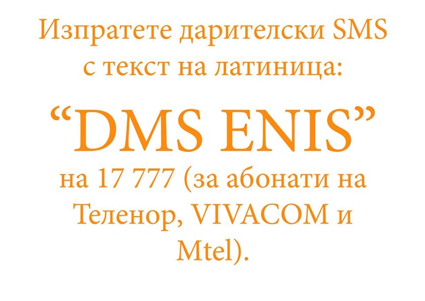 За детенцето писахме преди 2 месеца, но сега разбираме, че вече е много по-лесно и бързо да помогнем на малчугана. Вече всеки от нас може да прати СМС на номер 17 777 с текст "DMS ENIS".