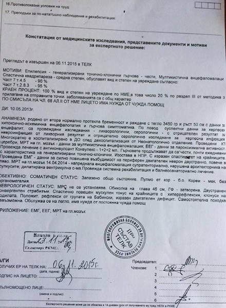 Енис е само на четири годинки! Макар да изглежда напълно здрав, Ени е диагностициран с достатъчно тежко заболяване: генерализирана епилепсия с големи и малки припадъци, церебрална киста, мулкистична левкомалация, спастична церебрална парализа, спастична квадрипареза.
