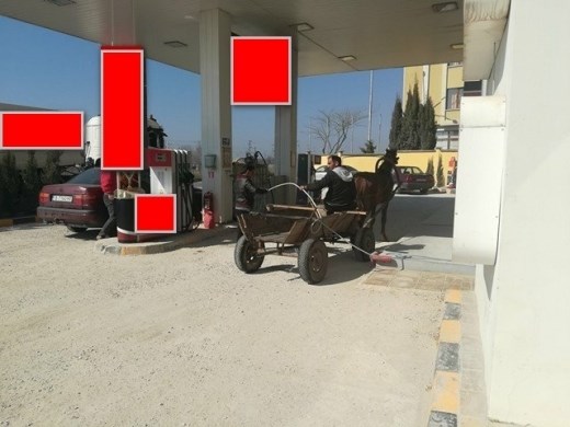 На една от колонките е влязла каруца, която оставила в недоумение, както персонала, така и шофьорите, пише Petel.bg.